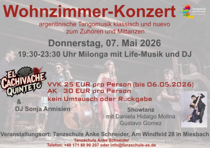 und vorher (16:45 bis 18:00) Tangokurs mit Sabine & Sergio